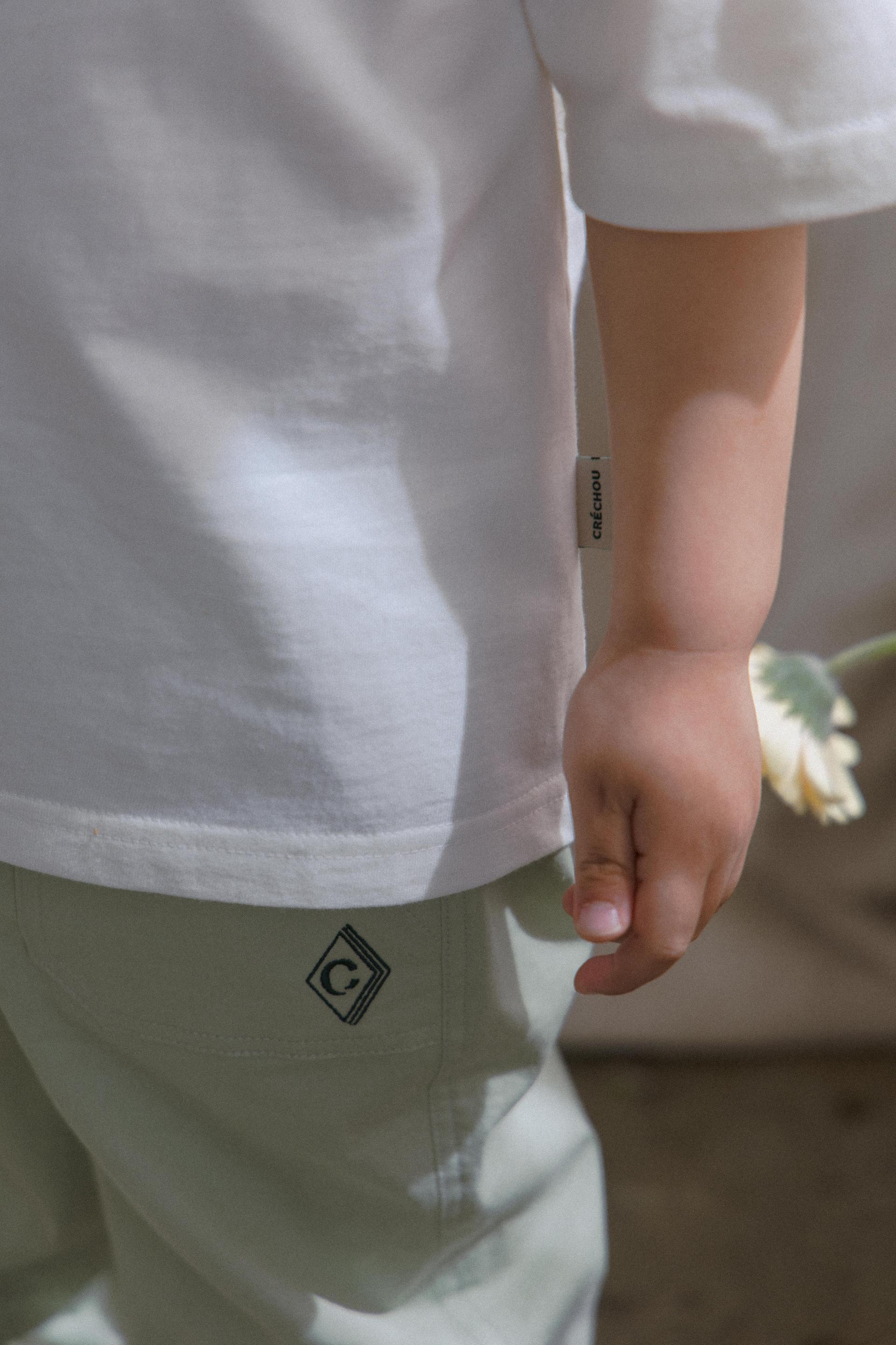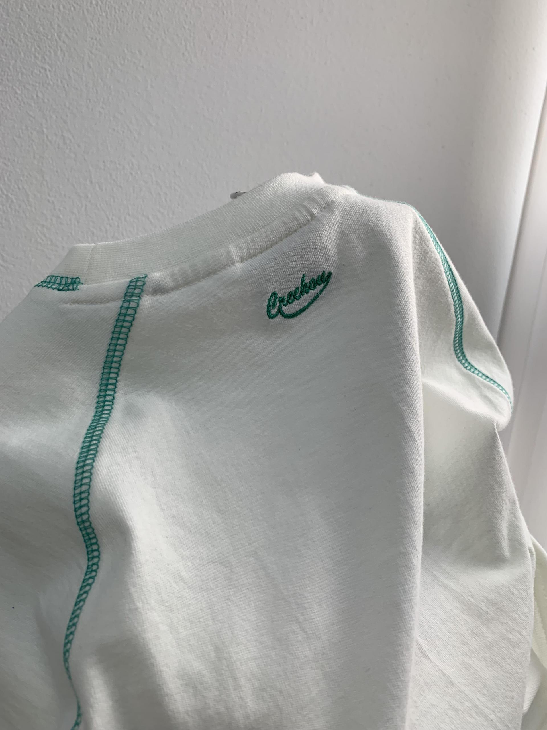 디자인 포인트로는 가슴 센터에 크레앤슈의 캐릭터 로고 자수로 표현하여,