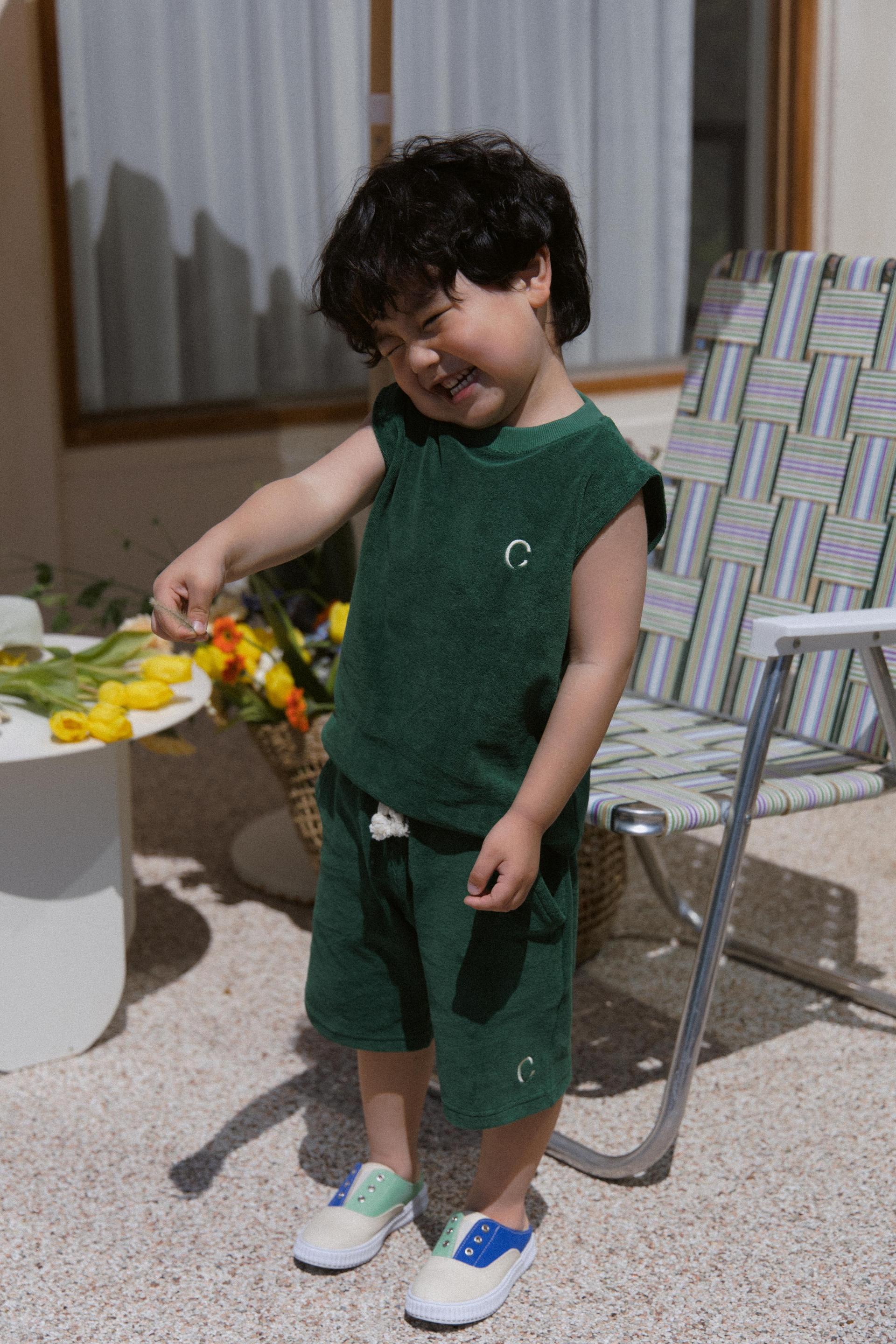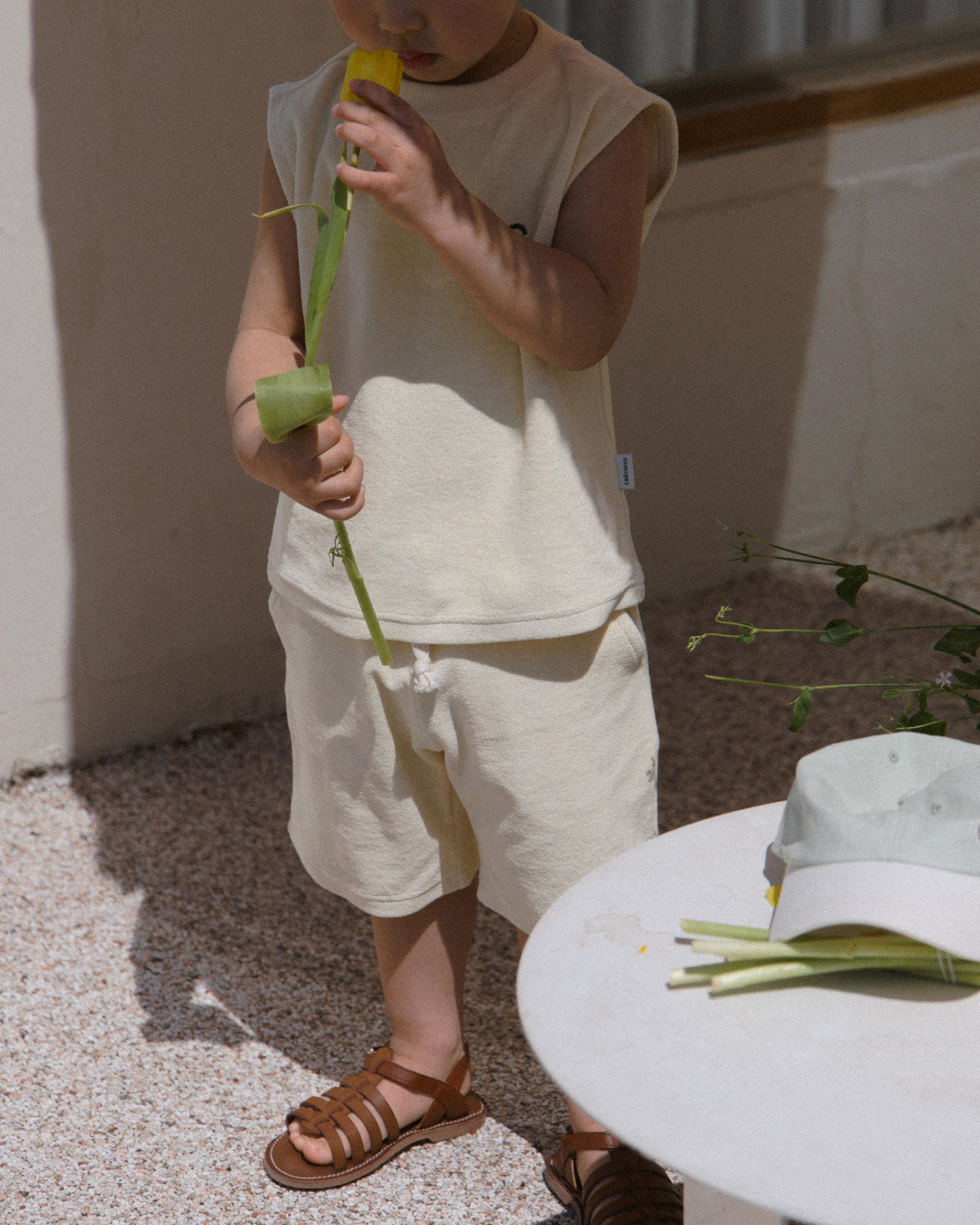 클린한 싱글지 원단처럼 매끈하게 직조된 테리 소재입니다.